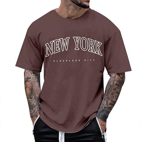 Oversized T-Shirt Men's Crew Neck Short Sleeve Shirt Creative Letters Los Angeles Graphic Palm Tree T-Shirt Summer Tops Men Sports Shirts Fashion Print Running Shirt Tops Streetwear, Z-Brown, XL