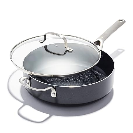 OXO Agility Series 5QT Saute Pan with Lid, Ceramic Nonstick Cookware PFAS-Free, Induction Suitable, Quick Even Heating, Stainless Steel Handles, Chip-Free Rims, Dishwasher and Oven Safe, Black