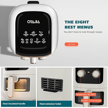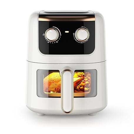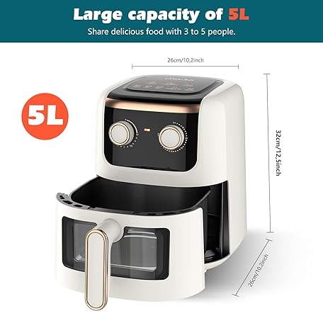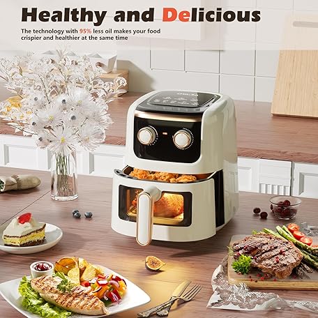 Thông tin sản phẩm Oyajia 5.5L Air Fryer with Visual Window, Dishwasher-Safe, Healthy Oil Free & Low Fat Cooking, Cream White