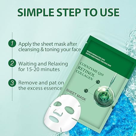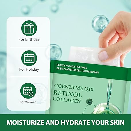 Thông tin sản phẩm Pack of 10 Collagen Mask Face Masks Skincare, Coenzyme Q10 Retinol Collagen Facial Masks Skincare, Hydrating Face Beauty Care Masks for Deep Moisturizing