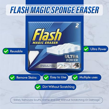 Sản phẩm Pack of 2 x 2 Magic Sponge Eraser Ultra Power | With no Harsh Chemicals | Safely Removes Scuffs, Grime And Dirt Without Scratching Or Damage | Size 12.1x6.6x2.2cm đang được bán với giá ưu đãi là $14.3662 tại nước Anh.