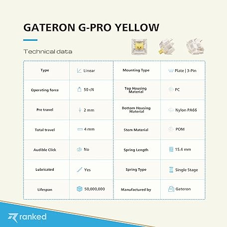 Thương hiệu Ranked là cái tên nổi tiếng được rất nhiều khách hàng trên thế giới chọn lựa. Với kiểu dáng đẹp mắt, sang trọng, sản phẩm Pack of Gateron ks-9 G PRO Switches for Mechanical Gaming Keyboards | Plate Mounted | Pre Lubed (Gateron PRO Yellow, 65 Pcs) là sự lựa chọn hoàn hảo nếu bạn đang tìm mua một món cho riêng mình.