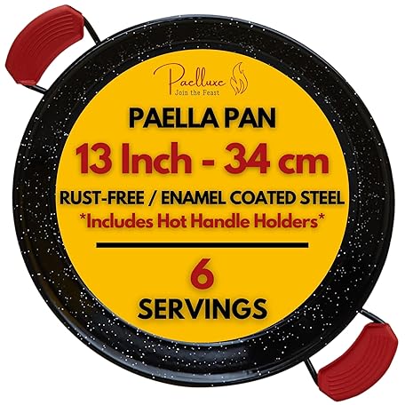 • Paelluxe Paella Pan – Enamelled, No-Rust Steel Skillet – Easy-to-Clean Pan for Propane & Gas Burners – Indoor & Outdoor Cooking Cacerola Paellera Sarten – 13 Inch, for 6 Servings