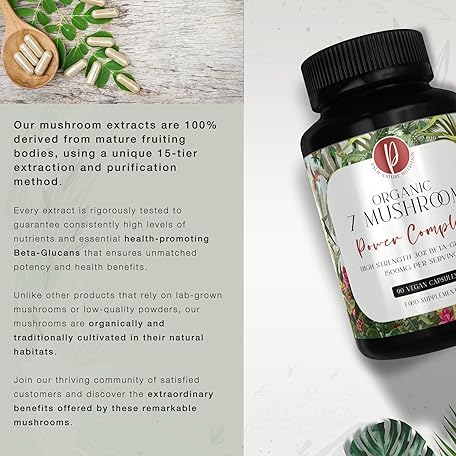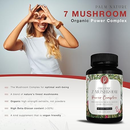 Thông tin sản phẩm Palm Nature 7 Mushroom Complex - High Strength Extracts Not Powders - 30% Beta-Glucans - 90 Capsules - 1500mg Per Serving - Lions Mane, Chaga, Reishi, Shiitake, Maitake, Tremella, Cordyceps