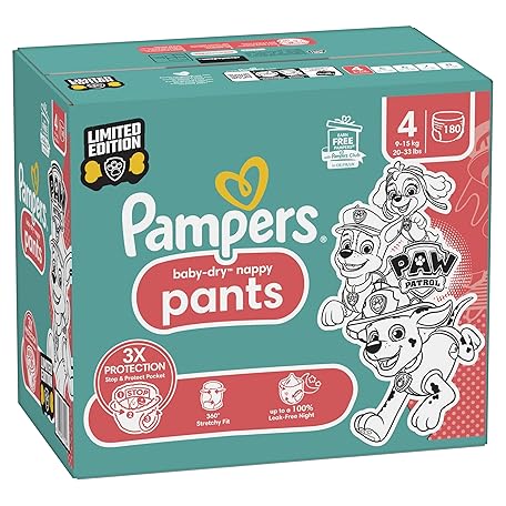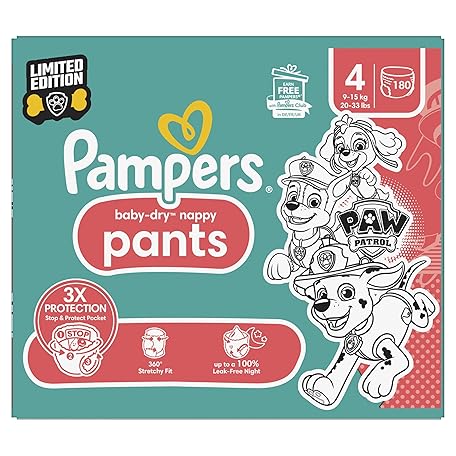 Thương hiệu Pampers là cái tên nổi tiếng được rất nhiều khách hàng trên thế giới chọn lựa. Với kiểu dáng đẹp mắt, sang trọng, sản phẩm Pampers Baby-Dry Nappy Pants Paw Patrol Edition Size 4, 180 Nappies, 9kg-15kg, Monthly Pack, with Our 360° Pants Fit to Help Prevent Leaks là sự lựa chọn hoàn hảo nếu bạn đang tìm mua một món cho riêng mình.