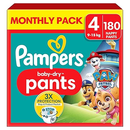 Sản phẩm Pampers Baby-Dry Nappy Pants Paw Patrol Edition Size 4, 180 Nappies, 9kg-15kg, Monthly Pack, with Our 360° Pants Fit to Help Prevent Leaks đang được bán với giá ưu đãi là $40.0793 tại nước Anh.