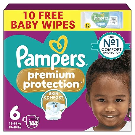 Thông tin sản phẩm Pampers Premium Protection Size 6, 144 Baby Nappies, 13kg-18kg, Monthly Pack, Pampers Harmonie Aqua Baby Wipes 1 pack of 10 Wipes