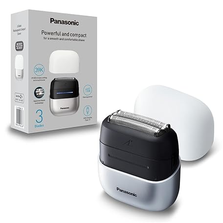 Panasonic ES-ACM3BW503 Series 700 Compact Shaver with 3 Blades, Wet & Dry Shaver for Men, Beard Density Sensor+, IPX7 Waterproof, USB-C Charging, AC USB Power Supply, White