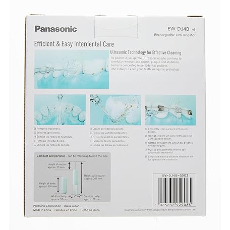 Thông tin sản phẩm Panasonic EW-DJ4B-G Travel Oral Irrigator, Rechargeable with Ultrasonic Technology, 150 ml Water Tank, Fast Charging in 1 Hour