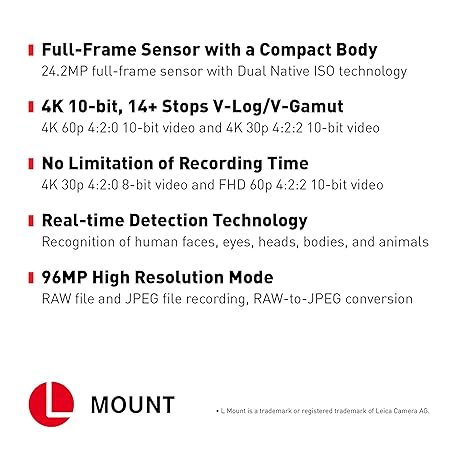 Thông tin sản phẩm Panasonic LUMIX DC-S5 S5 Full Frame Mirrorless Camera body, 4K 60P Video Recording with Flip Screen and Wi-Fi, L-Mount, 20-60 mm Lens, 5-Axis Dual I.S, (Black)