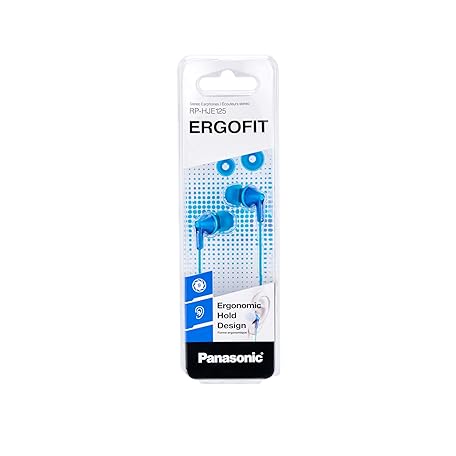 Thông tin sản phẩm Panasonic RP-HJE125-K, 3.5mm ErgoFit Wired Earbuds, Noise Isolating In-Ear Stereo Earphones, Dynamic Clear Sound, Ergonomic Custom-Fit Earpieces (S/M/L), Large 9mm Driver, Long cord, No Mic - Blue
