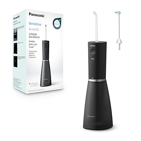 Panasonic Series 800 Ultrasonic Oral Irrigator EW-DJ86-K511, Water Flosser for Teeth, with Panasonic WEW0986X503 Ultrasonic Nozzles (2-Pack)