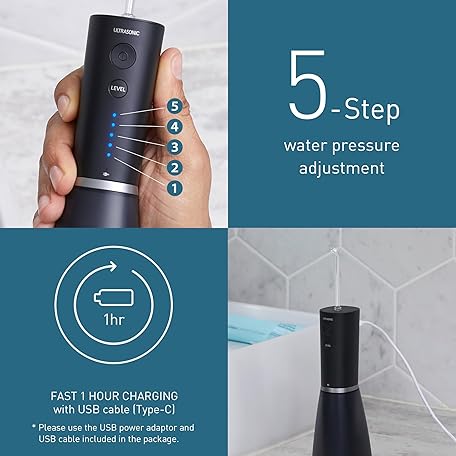 Thông tin sản phẩm Panasonic Series 800 Water Flosser for Teeth, Cordless EW-DJ86-K511, 99.9% Plaque Remover, USB-C Charging, Ultrasonic, Orthodontic Nozzle, 5 Pressure Settings, Oral Irrigator for Home & Travel, Black