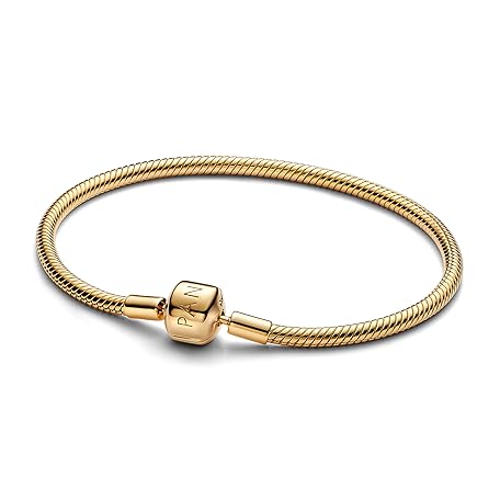 Pandora Moments Schlangen-Gliederarmband mit Kugelverschluss aus Sterling Silber mit vergoldeter Metalllegierung,Kompatibel mit Pandora Moments Charms, Size: 19 cm, 563390C00-19