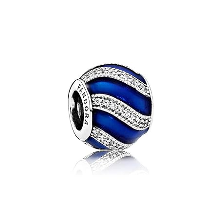 PANDORA Pearl Charm Silver Blue Christmas Woman 791991EN118, Enamel, Cubic Zirconia