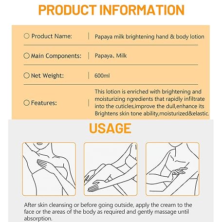 Sản phẩm Papaya Milk Body Lotion Moisturizer Lightening Smooth Skin Body Cream Nourishing Lotion For Women 600ml Milk And Papaya đang được bán với giá ưu đãi là $24.9392 tại nước Anh.