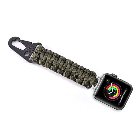 Paracord Keyring Clip Compatible with Apple Watch Fob iWatch Series Ultra 8 7 6 5 4 3 2 1 SE Connector for Camping Hiking Outdoor Activities, 42/44/45/49, Stainless Steel, No gemstone.
