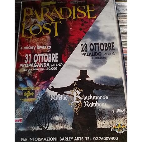Sản phẩm Paradise Lost + Misery Loves Co Milano Propaganda 31/10, Ritchie Blackmore's Rainbow + Milky Milano Palalido 28/10 Poster đang được bán với giá ưu đãi là $29.9532 tại nước Anh.