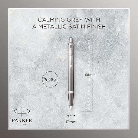 Sản phẩm Parker IM Writing Rituals, Ballpoint Pen, Grey Finish with Gradient, Chrome Trims, Medium Point, Blue Ink, Gift Box đang được bán với giá ưu đãi là $22.4104 tại nước Anh.