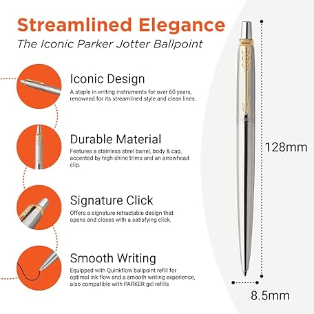 Thông tin sản phẩm Parker Jotter Stainless Steel personalised parker pen engraved In Classy Gift Box Ideal Anniversary, Birthday or Fathers Day Gift Perfect For Men & Women With Laser Engraving (Silver & Gold)