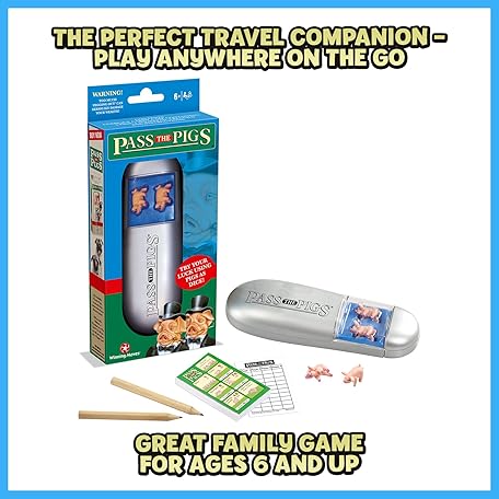 Thông tin sản phẩm PASS THE PIGS Dice Game, The classic party and travel game, Will you get a Leaning Jowler? A Double Snouter?, first to 100 points wins, great gift for ages 6 plus