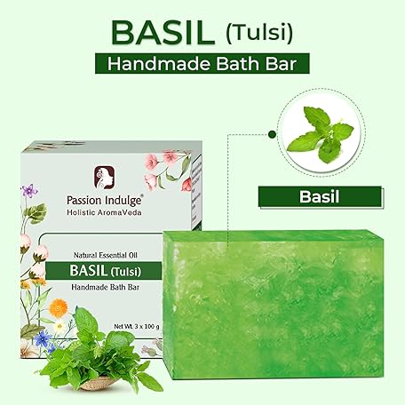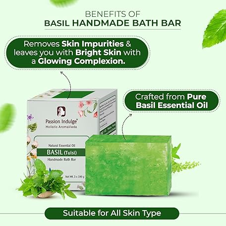Thông tin sản phẩm Passion Indulge Basil Handmade Natural Bath soap | Moisturising & Nourishing | Natural & Vegan | No Parabens, Sulphates | Gentle Skin Cleansing soap | Suitable for all type skin -Pack of 3