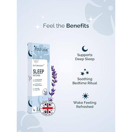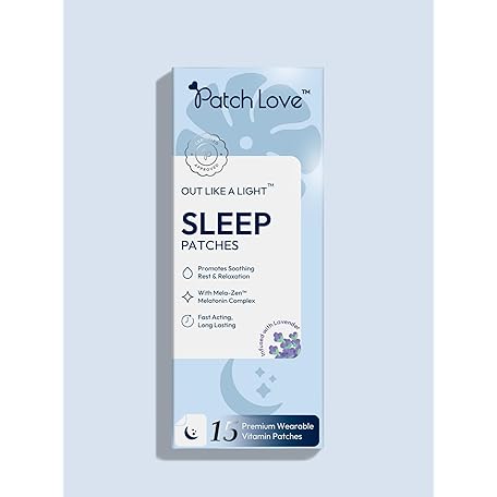 • Patch Love “Out Like a Light” Melatonin Sleep Patch for Natural Deep Sleep Support – Valerian, Hops, Passion Flower, Magnesium - 15 Patches - Vegan - Made in UK