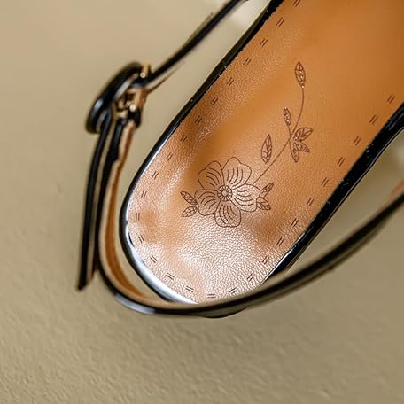 Thông tin sản phẩm Patent Leather Square Toe Buckle Strap Women's Shoes, Block Heel Medium Heel with 6 cm Pumps for Women Large Size Z034s36T, black, 8.5 UK