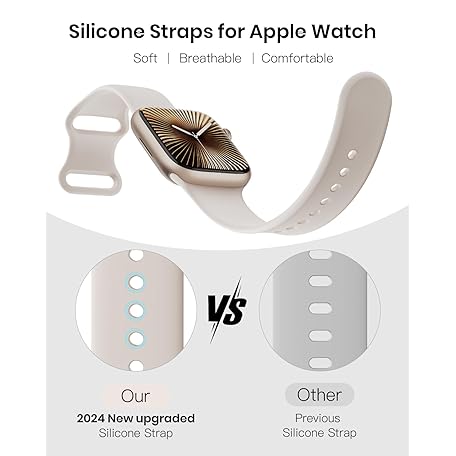 Sản phẩm Patented Upgraded Silicone Strap Compatible with Apple Watch Straps 38mm 40mm 41mm 42mm(Series 10) for Women Men,Soft and Breathable Sport Watch Bands for iWatch Series 10 9 8 7 6 5 4 3 2 1 SE đang được bán với giá ưu đãi là $8.4802 tại nước Anh.