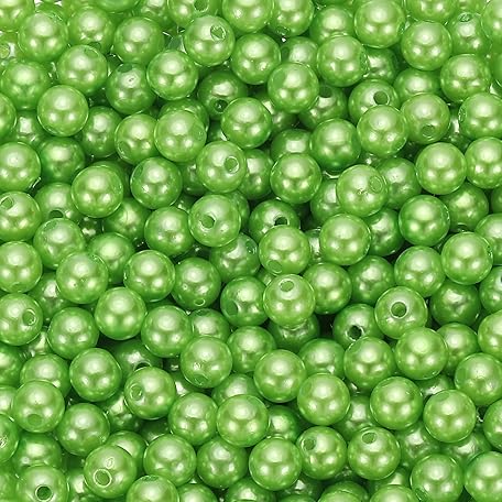 PATIKIL 6mm Round Shiny Pearl Beads, 2200 Pcs Faux Pearls Loose Beads with Hole for Cosmetic Boxes DIY Parts Jewelry Making Wedding Birthday Party Home Decorating, Grass Green