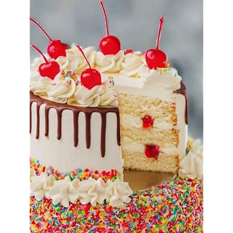 Thông tin sản phẩm Patisserie Valerie Ice Cream Sundae Birthday Cake 8" 2 Tier – Fresh Cakes For Delivery - Chocolate Ganache Drip, Sprinkles & Cherry – Fresh Cream & Strawberry Compote Filling – Serves 20-24