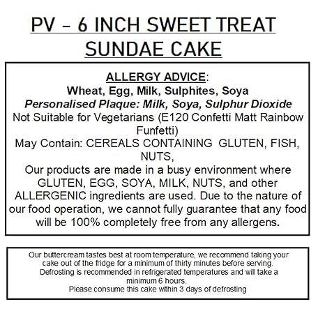 Thông tin sản phẩm Patisserie Valerie Sweet Treat Sundae Cake, 15cm, 3 Sponge Layers, Cream, Strawberry Compote, Chocolate Ganache, Rainbow Sprinkles, Cherries 6" (10 Portions)