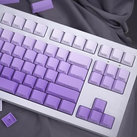 • PBT Dye-Sub Keycaps 125 Keys Cherry Profile Gradient Purple Keycaps Set Fit for 61/64/87/104/108 Cherry Mx Switches Mechanical Keyboard