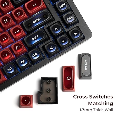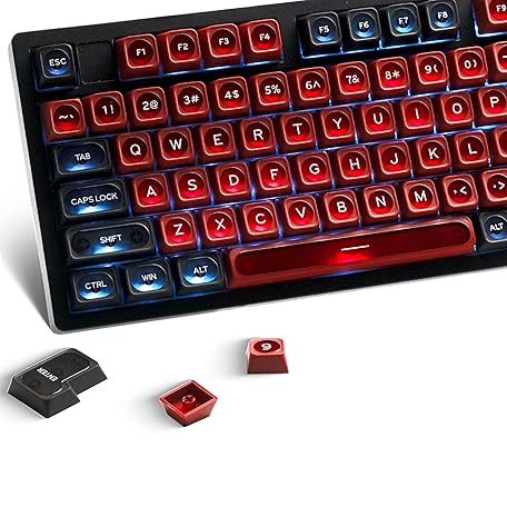 Thông tin sản phẩm PBT Keycaps - RGB Backlit Keycap Set,Black & Red Doubleshot Shine Through Keycaps for Any Size Mechanical Keyboards - for All 60%, 65%, 75%, 85%, TKL & Full Size Keyboards