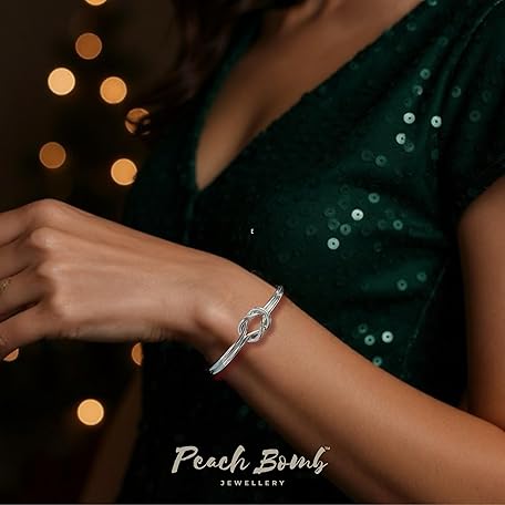 Sản phẩm Peach Bomb Silver Bangle For Women with Friendship Knot Bracelet Design. Jewellery Gift for Her Birthday, Anniversary in Branded Gift Box đang được bán với giá ưu đãi là $46.761 tại nước Anh.