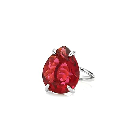 Pear Cut Pink Tourmaline Ring - 925 Sterling Silver Ring - White Gold Rhodium Ring - October Birthstone Ring - Teardrop Cocktail Ring - Solid Silver Pear Stone Ring