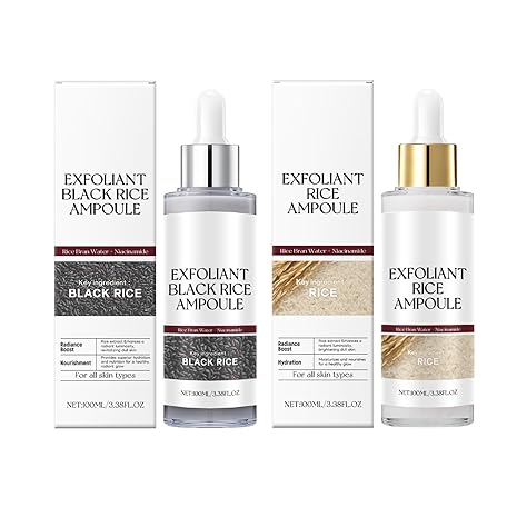 Peel Shot Glow Rice Ampoule Duo, White Rice and Black Rice Face Exfoliator and Facial Scrub, Gentle Dead Skin and Blackhead Remover, Hydrating Moisturizing Pore Minimizer for Radiant Complexion