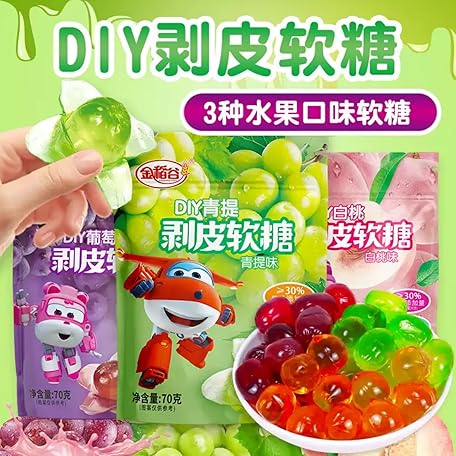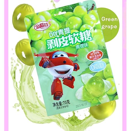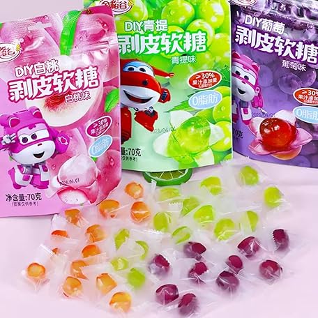 Thông tin sản phẩm Peelable Fruit Gummy Candy (70g) - 3 Flavours: Green Grape, White Peach, Grape - Soft Sweets - Juicy & Chewy Asian Snacks - Perfect for Kids & AdultsHealthy Desserts (Grüne Traube)