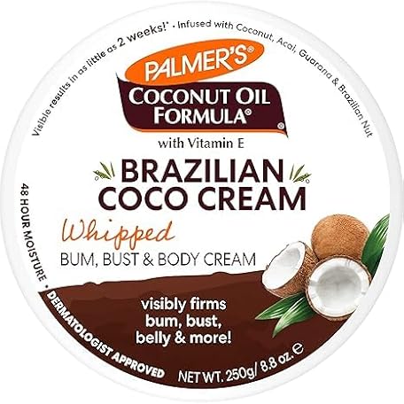 Pelmer Brazilian Coco Cream, Whipped Bum, Bust & Body Cream with Coconut Oil and Vitamin E, 250g