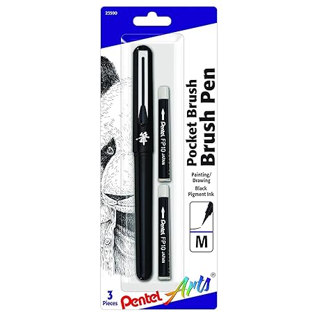 Pentel Arts Pocket Brush Pen, Includes 2 Black Ink Refills (GFKP3BPA)