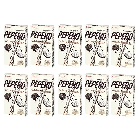 Pepero White Cookie Sticks 32g x 10 Pack – Korean Snack, Crunchy Biscuit Sticks Coated in Cookies & Cream – Delicious Treat for Sharing & Gifting