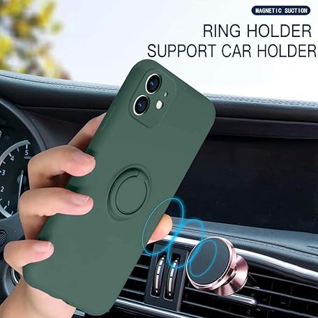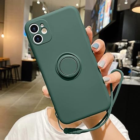 Pepmune Compatible with iPhone 11 Case Liquid Silicone with Ring Holder Kickstand Magnetic Car Mount Detachable Wrist Strap Shockproof Soft Protective Cover-Blackish green
