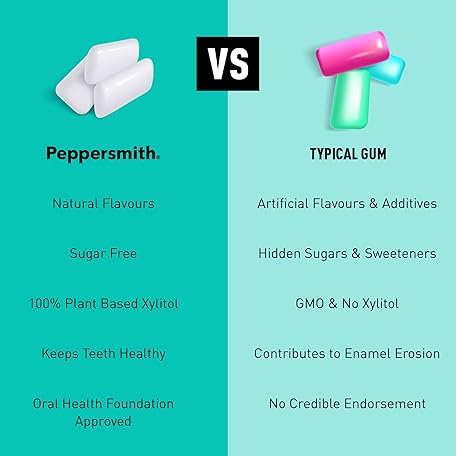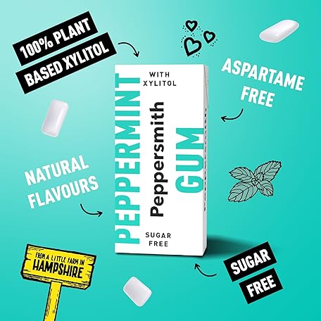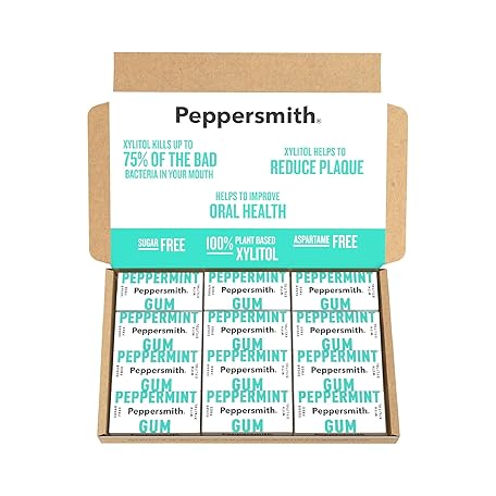 Sản phẩm Peppersmith - British Peppermint Chewing Gum - Vegan Friendly - 100% Xylitol Plant Based Sweetener - Fresh Breath - Sugar Free Gum - Benefits Oral Health - Pocket Packs - 12x15g đang được bán với giá ưu đãi là $23.1843 tại nước Anh.