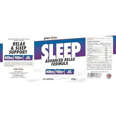 Sản phẩm Per4m Sleep Advanced Relax Formula | Stress and Relaxation Support | 600mg Ashwagandha | 300mg L-Theanine, L-Tryprophan and Valerian Root | 1 Month Supply | 120 Capsules đang được bán với giá ưu đãi là $50.9902 tại nước Anh.