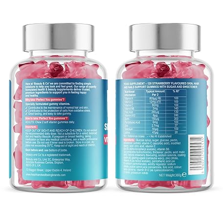 Thông tin sản phẩm Perfect You Skin, Hair and Nails Gummies - with Biotin, Zinc & Selenium - Strawberry Flavoured Gummies (120 Count)