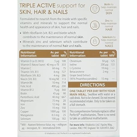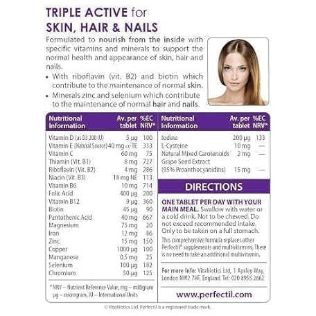Thông tin sản phẩm Perfectil Original Beauty Supplement for Hair Skin and Nails, One-A-Day Formula, 90 Unflavoured Tablets, 90-Day Supply, by Vitabiotics (Pack of 3)