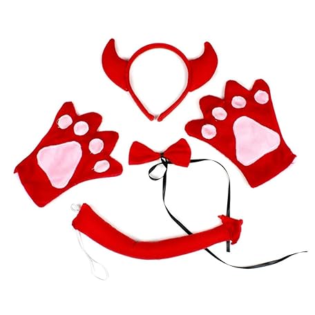Petitebelle Headband Bowtie Tail Gloves 4pc Children Costume 1-5y (Red Devil, One size)