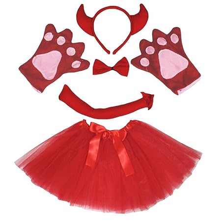 • Petitebelle Headband Bowtie Tail Gloves Tutu 5pc Girl Costume 1-10y (Devil, 1-5 Years)