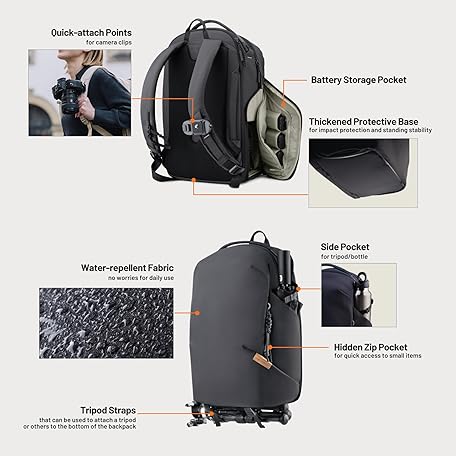 Thông tin sản phẩm PGYTECH OneGo Lite Camera Backpack 22L Lightweight Camera Bag Compatible with Sony/Canon/Nikon/DSLR/SLR Mirrorless Cameras, Water-Resistant BackPack for Urban & Travel Photography, Matte Black