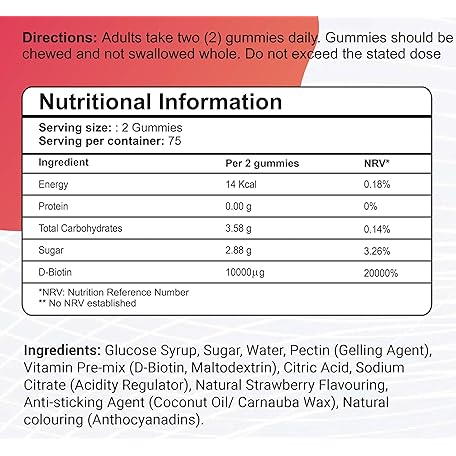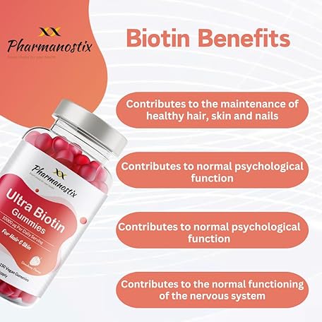 Thông tin sản phẩm Pharmanostix Ultra Biotin 5000mcg Vegan Gummies - 10000mcg Per Daily Dose - for Hair, Skin and Nail Growth Support - 150 Natural Strawberry Flavour - 75 Days Supply - for Men and Women